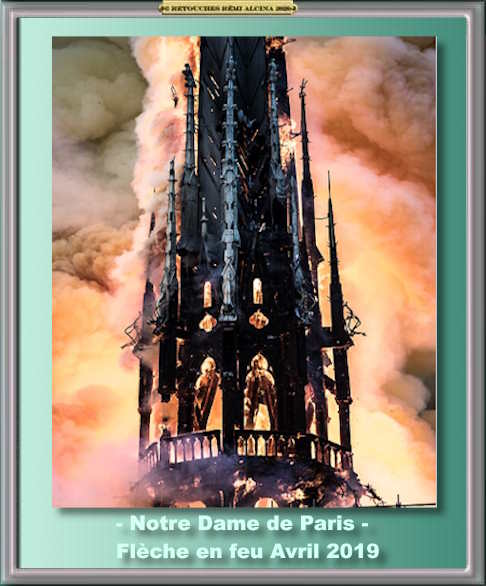 « Tous les yeux s’étaient levés vers le haut de l’église. Ce qu’ils voyaient était extraordinaire. Sur le sommet de la galerie la plus élevée, plus haut que la rosace centrale, il y avait une grande flamme qui montait entre les deux clochers avec des tourbillons d’étincelles, une grande flamme désordonnée et furieuse dont le vent emportait par moments un lambeau dans la fumée. Au-dessus de cette flamme, au-dessus de la sombre balustrade à trèfles de braise, deux gouttières en gueules de monstres vomissaient sans relâche cette pluie ardente qui détachait son ruissellement argenté sur les ténèbres de la façade inférieure. » – Victor Hugo cité dans : – Notre Dame un athanor – Athanase –
