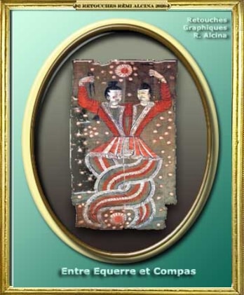« (à propos du Tableau de loge)… Il est à noter que l’on retrouvera une telle organisation dans le Mandala et le Thangka qui sont des supports de Méditation du Bouddhisme tantrique mais aussi plus près de nous dans le Jeu de Marelle Constitué lui aussi d’une Terre d’un Ciel et une zone Intermédiaire numérotée. » – RL∴ 813 FF∴ Libres – Ori∴ Bez∴ – J-l∴ Bou∴ – 6013 –