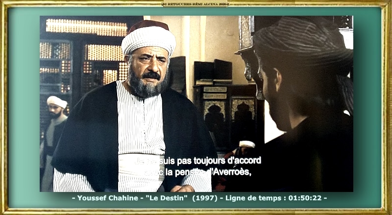 « Al-Razi ou Rhazès, (En Egypte) : « Je ne suis pas toujours d’accord avec Averroès, mais en la circonstance, la sauvegarder (L’œuvre d’Averroès) est un devoir ! » – Youssef Chahine – « Le Destin » (1997) – Time ligne 01:50:22 –