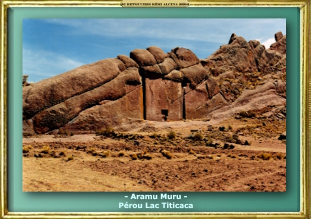 « Le Mystère de la porte d’ Hayu Marka, Cette «Porte des Dieux», « Tau » : nommée aussi «Porte des Étoiles» est située au Pérou, à proximité du lac Titicaca, sur le Territoire Aymara, dans «la Vallée des Esprits»… porte d’ Aramu Muru est nommée porte d’ Hayu Marka. C’est une cavité géométrique creusée dans la roche, de faible profondeur. Elle daterait de la période Pré Inca […] Le prêtre Incas utilisait un disque d’or sacré «la clé des dieux des sept rayons» pour ouvrir un vortex en forme de tunnel à la lumière bleue et disparaître. […] pourrait évoquer «le Dormant», sans «l’Huisserie» de «la Porte». Le Passage. » – https://arcturius.org/le-mystere-du-tau-et-les-portails-dimensionnels/