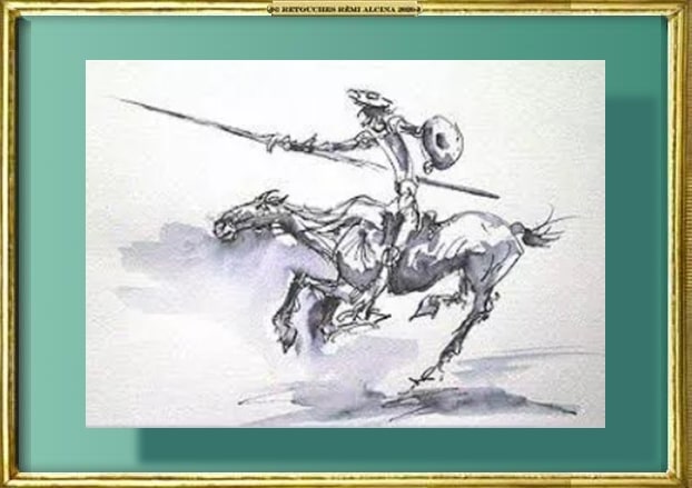« Don Quichotte ne raisonne pas et ne se pose même pas la question de sa mission : Celle-ci s’est emparée de son cœur pur, c’est la Providence qui l’appelle du fond de son âme. Pas de pourquoi mais un comment, pas de but ni de succès mais l’effort. Le mode de vie chevaleresque de Don Quichotte est renoncement à la gloire finale, à la couronne de laurier et d’olivier, au nom de l’effort purificateur. Tel un Maître Secret, il s’est façonné dans le Devoir et l’Idéal. » – A-01 Akadémia – Cam∴ Mon∴ – Ala∴ MAS∴ « Le métier et la chevalerie au 15° » pour accession – 6025 –