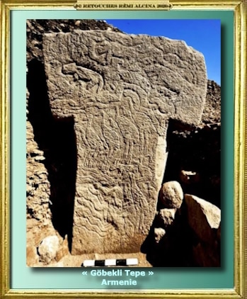 « Le Mystère de Göbekli Tepe : Le site Néolithique est située au Royaume d’Arménie. […] « Göbekli Tepe » signifie «colline en forme de ventre », « la colline avec un nombril ». […] Véritable Arche de Noé, avec des représentations d’animaux. Des piliers en Tau de 10 à 50 tonnes, auraient 12.000 ans, alignés en cercle pour former plusieurs structures. Ces menhirs mégalithiques pourrait évoquer «l’Huisserie» de «la Porte» qui pourrait s’adapter à la «Porte des Dieux». – https://arcturius.org/le-mystere-du-tau-et-les-portails-dimensionnels/ –