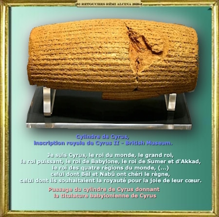 « Figuré par Cyrus, ce Roi par crainte, me libère de la partie de ma psyché asservie à cette Babylone sans aspiration autre que l’avoir et le pouvoir, et me donne aussi les moyens de me verticaliser en me formant Chevalier combattant. » – A-01 Akadémia – Cam∴ Mon∴ – Ala∴ MAS∴ « Le métier et la chevalerie au 15° » pour accession – 6025 –