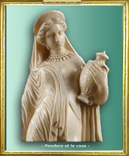 « …tous les dons. «Héphaïstos façonnera Pandore (tous les dons) à partir de l’argile, Athéna lui donnera la vie et l’habillera, Aphrodite lui donnera la beauté pour attirer les hommes et Hermès lui apprendra le mensonge et l’art de la persuasion et lui donna la curiosité ; enfin Héra lui donna la jalousie. » – Télécharger : Pandore – Question : Pan = tous, Dore = Dons, l’Âge d’Or ou âge dore ne serait’ il pas l’Âge de tous les Dons, – Note Rémi ALCINA –