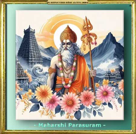 « Les Avatars de Vishnu : Un Avatar est une incarnation d’un Dieu sur Terre. Lorsque l’Ordre éternel, la loi du Dharma est menacée, une divinité descend sous forme d’Avatar. Les Avatars les plus connus sont ceux de Vishnu et sont vénérés comme des divinités à part entière. «La sixième descente de Vishnu sur Terre eut lieu lors de la Révolte des Kshatriyas, la Caste princière. Ceux ci entendaient s’emparer du pouvoir Religieux. Le contrôle du pouvoir par les Kshatriyas mènerait la société à son déclin…. Parasuram combattit fort et si bien la Caste princière, qu’il remplit Cinq Lacs de leur Sang. Puis il rétablit l’Ordre sur Terre en redistribuant le pouvoir à la Classe Sacerdotale des Lettrés. » – René GUENON en parle dans « Aperçus sur l’initiation » chapitre XL et dans « Autorité Spirituelle et pouvoir temporelle ». – Note Rémi ALCINA –