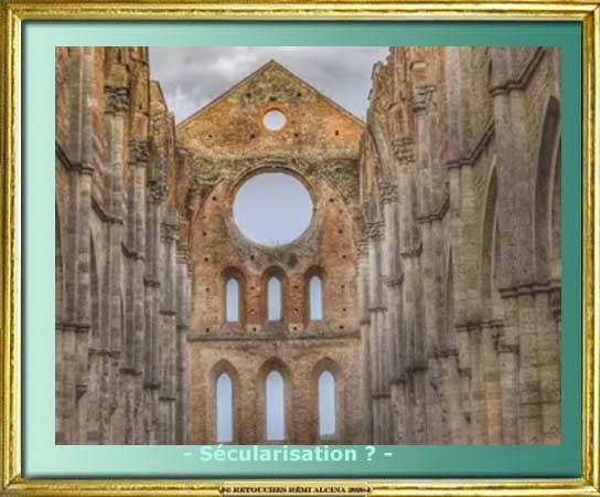 « Abolir la Sécularisation est Impossible. Accomplir la Sécularisation est Impossible. En découle un Entre-temps sans Vrai Horizon, hormis l’Apocalypse. » – JF COLOSIMO – » Aveuglements » Editions du Cerf 2018 – Page 130 – Attention : la sécularisation concerne la tentative de prise d’autorité sacerdotale par le pouvoir temporel….C’est une notion Universelle et intemporelle, voir René Guenon « Autorité sacerdotale et pouvoir temporel. » – Note Rémi ALCINA – Télécharger : rene-guenon-tout guénon-v2 –