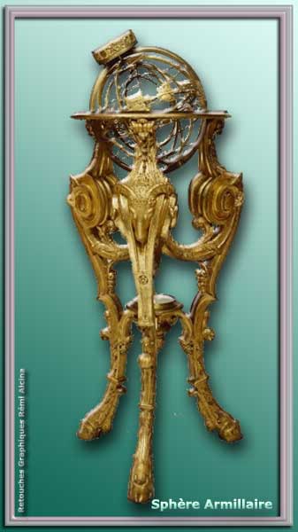 « Sphère armillaire, ce dit d’une sphère représentant le monde tel que les anciens le concevaient, c’est à dire constitué de cercles figurant les mouvements apparents des astres autour de la terre située au centre de la sphère. » – Média-dico –
