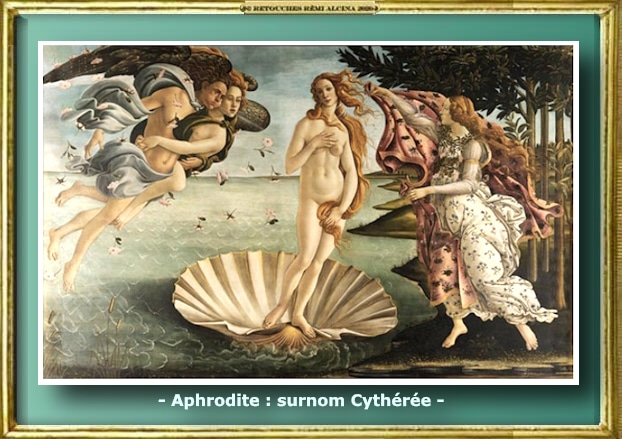 « Surnom topique. Surnom donné à une divinité en fonction du nom du lieu qu’elle protège… Cythérée était le surnom topique d’Aphrodite (lar. Lang. Fr.). – http://www.cnrtl.fr/lexicographie/topique –