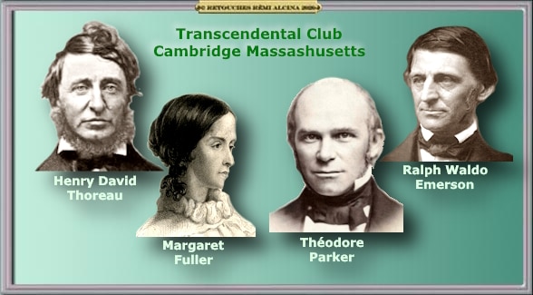 « Le mouvement a démarré avec la création du Transcendental Club à Cambridge (Massachusetts) le 8 septembre 1836 par quelques intellectuels réputés, notamment Henry David Thoreau, Ralph Waldo Emerson, Margaret Fuller, Theodore Parker, et Frederick Henry Hedge (en). L’ouverture de ce club intervenait en réaction à l’état général de la culture et de la société de l’époque, et plus particulièrement comme une protestation contre la position majoritaire des intellectuels de Harvard et contre la doctrine de l’église unitarienne enseignée à la faculté de théologie d’Harvard… » – https://fr.wikipedia.org/wiki/Transcendantalisme_(%C3%89tats-Unis)