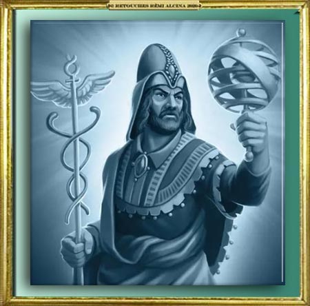 - Hermès Mercure (grec) revigoré par Thot devient le Maître de la pensée transcendante. En tant que Messager des Dieux et Gardien des portes il détient les clés de la vie et de la mort.